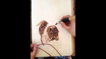 This person etched on a piece of wood, a portrait of a dog using wood burning technique as part of an art form called pyrography. The portrait came out beautifully and was carved with perfection.