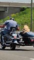 Occurred on May 31, 2023 / Hamilton, Ontario, Canada: "I was driving home with my wife and son from McMaster. I looked out my window and saw this man cruising with his furry k9 companion. It was beautiful love in the purest form."
