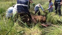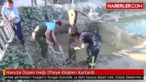 Çorum’un İskilip ilçesinde çatıya çıkan ineği itfaiye ekipleri kurtardı.