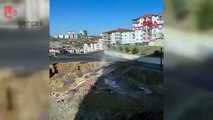 Ankara'da sağanak sonrası bir binanın istinat duvarı gecekondu üzerine çöktü. Gecekondu da yaşayan 7 kişilik aile yara almadan kurtulmayı başardı.