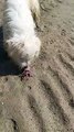 Dog Bites And Paws At Beach Crab