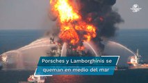 Sujeto con pasamontaña entra a agencia de autos de lujo y les prende fuego