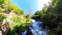 Gümüşhane’nin Şiran ilçesinde dağın ortasındaki 40 ayrı noktadan dökülen buz gibi suyun oluşturduğu Tomara Şelalesi yazın sıcağından kurtulmak isteyenlerin vazgeçilmez durağı oldu.