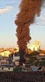 Incêndio de grandes proporções atinge garagem de ônibus no Bairro Aparecida, em BH