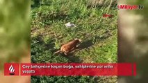 Kaçan kurbanlık boğa, sahiplerine zor anlar yaşattı