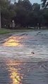 : "San Angelo, Tx had a thunderstorm that evening, with heavy rain and beautiful lightning show. San Angelo is like a bubble, rain storms usually pass right by. So when we do get rain, we all are very thankful! We decided to take a cruise once the weather eased up a little bit and check out the park's river. We saw a few raccoons roaming the park until we got to our awesome possum, which I now know is spelled opossum. I have 3 videos of him trying to cross the street and when he finally makes it. He rests over the curb once he makes it across. A great example of life, some might say."