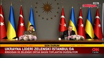 İstanbul'da Ukrayna Devlet Başkanı Volodimir Zelenski ile 2,5 saatlik bir zirve gerçekleştiren Cumhurbaşkanı Erdoğan, toplantının ardından düzenlenen basın toplantısında önemli açıklamalarda bulundu. Erdoğan, "Şüphesiz Ukrayna NATO'ya üyeliği hak ediyor. Her zaman ısrarla savunduğum bir hususu tekrar vurgulamak istiyorum. Adil bir barışın kaybedeni olmaz. Taraflar arasındaki anlayış farklılıklarına rağmen barış arayışlarına bir an evvel geri dönülmesi en samimi arzumuzdur" dedi.