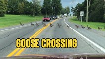 A video, recorded on the officer's bodycam, shows heavy traffic on Interstate-77 near Canton, Ohio, USA, as a gaggle of geese attempt the dangerous crossing.