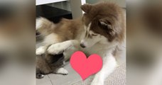 Dieser Welpe ist so glücklich seinen großen Huskyfreund zu sehen! Seine Reaktion ist wirklich bezaubernd!