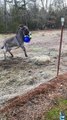 Debbie Schluterman's video showcases her adorable donkey who thoroughly enjoys playing with a jolly ball, enthusiastically throwing it around and even fetching it.