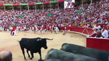La entrada de los Miura a la plaza de toros en el último encierro de Sanfermin 2019