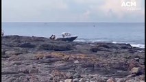 A lifeguard retrieves the carcass of a dead whale off North wollongong Beach.Video by Adam McLean, drone footage by Chris Hull.