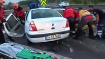 TEM Otoyolu Kocaeli geçişinde otomobil, tekstil ürünleri taşıyan tırdan devrilen yüklere, ardından bariyerlere çarptı.