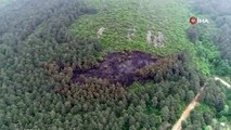 Aydosta yanan ormanlık alan havadan görüntülendi