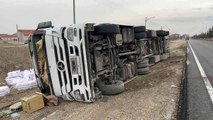 Tekstil malzemesi yüklü tır devrildi: 1 yaralı