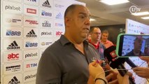 Vice-presidente de futebol do Flamengo, Marcos Braz não conversou com a imprensa após a vitória do clube sobre o Olimpia, nesta quinta-feira (3). Depois das polêmicas da última semana, o dirigente Rubro-Negro disse não poder falar com os jornalistas. A resposta, no entanto, seguiu uma determinação da Conmebol.