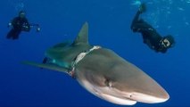 Hai mit Seil um den Hals: Bei der Befreiung passiert den Tauchern etwas Unerwartetes!