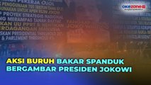 Massa buruh sempat melakukan pembakaran ban hingga sampah di dekat Bundaran Patung Kuda.