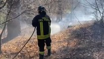 Incendio di vegetazione a Poggio a Caiano (PO), l'elicottero dei Vigili del Fuoco all'opera