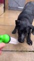 Black Lab Puppy Chomps At Water Spray