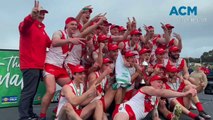 South Warrnambool sings the team song after winning the under 14 Hampden league football grand final.