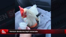 Horozun dondurma keyfi kamerada