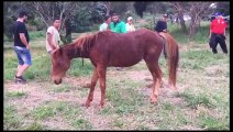 Cavalo amarrado em árvore fica descontrolado ao ser atacado por enxame de abelhas