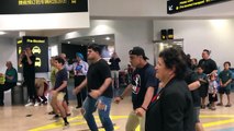 Il reçoit un accueil chaleureux de la part de sa famille à l'aéroport