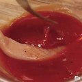 Aiguillettes de poulet laquées au ketchup servies avec ses frites de légumes