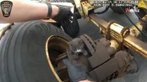 Lorry driver performing vehicle inspection suddenly calls emergency services