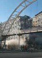 Yıkım sırasında duvarın caddeye devrildiği anlar kamerada