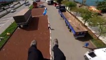 Yaklaşık 100 metre rakımlı Giresun Kalesi'nden atlayan yamaç paraşütçüsü Haluk Erdoğan, atlayışını üzerindeki aksiyon kamerasıyla saniye saniye kayda aldı.