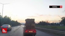 BURSA - Bursa'nın İnegöl ilçesinde sürücü, aracının üzerinde saman balyaları taşıdı. O anlar amatör kameraya saniye saniye yansıdı.