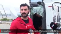 Tuzla'da bir hafriyat kamyonu şoförünün yolda zikzak çizerek ilerlediği anlar cep telefonu kamerasına yansıdı. Kamyonun şoförü o anları sosyal medya hesabında paylaştı.