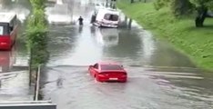 İstanbul’da etkili olan sağanak yağış nedeniyle Başakşehir’de hastane yolunda bir ambulans sular içerisinde mahsur kaldı.
