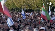 Mehrere hundert Menschen haben am Brandenburger Tor in Berlin an einer Solidaritätsdemonstration für Israel teilgenommen. Dazu aufgerufen hatten das Junge Forum der Deutsch-Israelischen Gesellschaft (DIG), die Jüdische Studierendenunion sowie der jüdischen Verein Werteinitiative.
