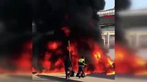 Alev alev yanan cip itfaiye ekiplerince söndürülürken, yangın nedeniyle trafik yoğunluğu yaşandı.