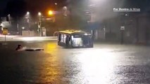 Ônibus e carro ficam ilhados em inundação na Avenida Vilarinho, em BH