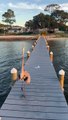 : "This took place on Friday, September 29, 2023, at the neighborhood dock. I was watching the sunrise after getting my son on the bus when one blue heron showed up. Everything was great until a second blue heron showed up and the first blue heron immediately turned on me. I ended up being able to scoot around him with my back turned but not before he made a lot more noise and snapped at me two more times."