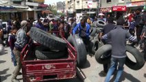Filistinliler Gazze sınırında devam eden gösteriler için lastik topladı - GAZZE
