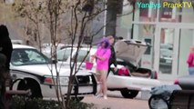 If she hadn't been in the car herself, the subject would have jumped out of her seat the moment she started getting splashed with soapy water. Her inability to escape the situation made the prank even more hilarious.