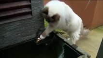 Bu kedi de normal değil. Kedi dediğin balık buldu mu atlar