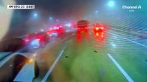 운전자는 다급히 차로를 바꿔보지만 차량과 다리 난간에 부딪힌뒤 중앙분리대까지 튕겨나갑니다.