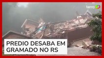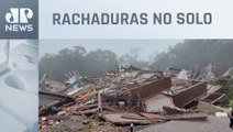 Um prédio interditado pela Defesa Civil desabou depois das enchentes na Serra Gaúcha. Rachaduras tomaram ruas de um bairro inteiro e há risco de novos deslizamentos.