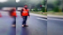 Kontrolden çıkan tır, bariyeri yıkarak karşı yöne geçti