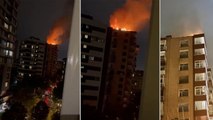 Kadıköy'de 14 katlı metruk binanın çatısına yıldırım düştü