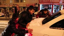 Kars’ta öğlen saatlerinde başlayan kar yağışı renkli görüntüler sahne oldu. Kar yağışı altında türkü söyleyip, halay çeken gençler kameralara yansıdı.