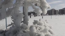 Kars-Ardahan sınırındaki 123 kilometrekare alana sahip Çıldır Gölü'nün yüzeyinde, soğuk hava nedeniyle buz tabakaları oluşmaya başladı.