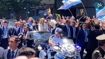 Le tiran una botella a Javier Milei mientras se dirigía en el descapotable a la Casa Rosada