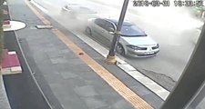 Bursa'da kavşağa yavaşlamadan giren bir otomobil kaldırıma çarparak takla attı ve fidanlıkta yangın çıktı. Sürücü olay yerinden kaçarken, polis kaçan sürücüyü yakalamak için çalışma başlattı.